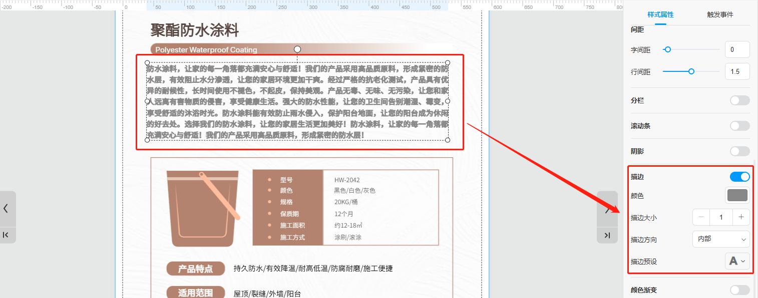 選中你所需要修改的文本框,打開【描邊】,可以給文字段落增加描邊效果。
