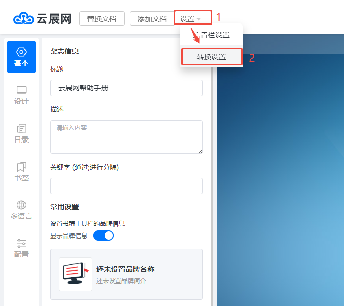 點擊【我的文檔】/【文檔】,點擊對應(yīng)書本的【編輯】/【外觀設(shè)置】。