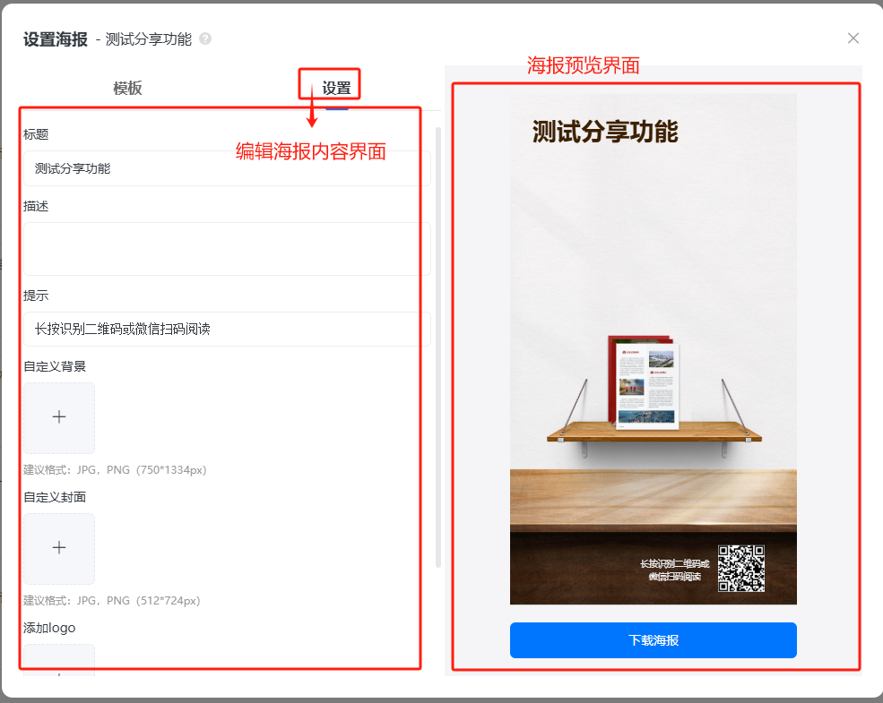 點(diǎn)擊【設(shè)置】,編輯海報(bào)內(nèi)容。