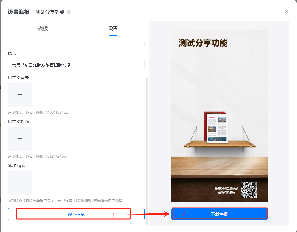 編輯好之后點(diǎn)擊【保存信息】,然后點(diǎn)擊【下載海報(bào)】,即可下載下來(lái)。