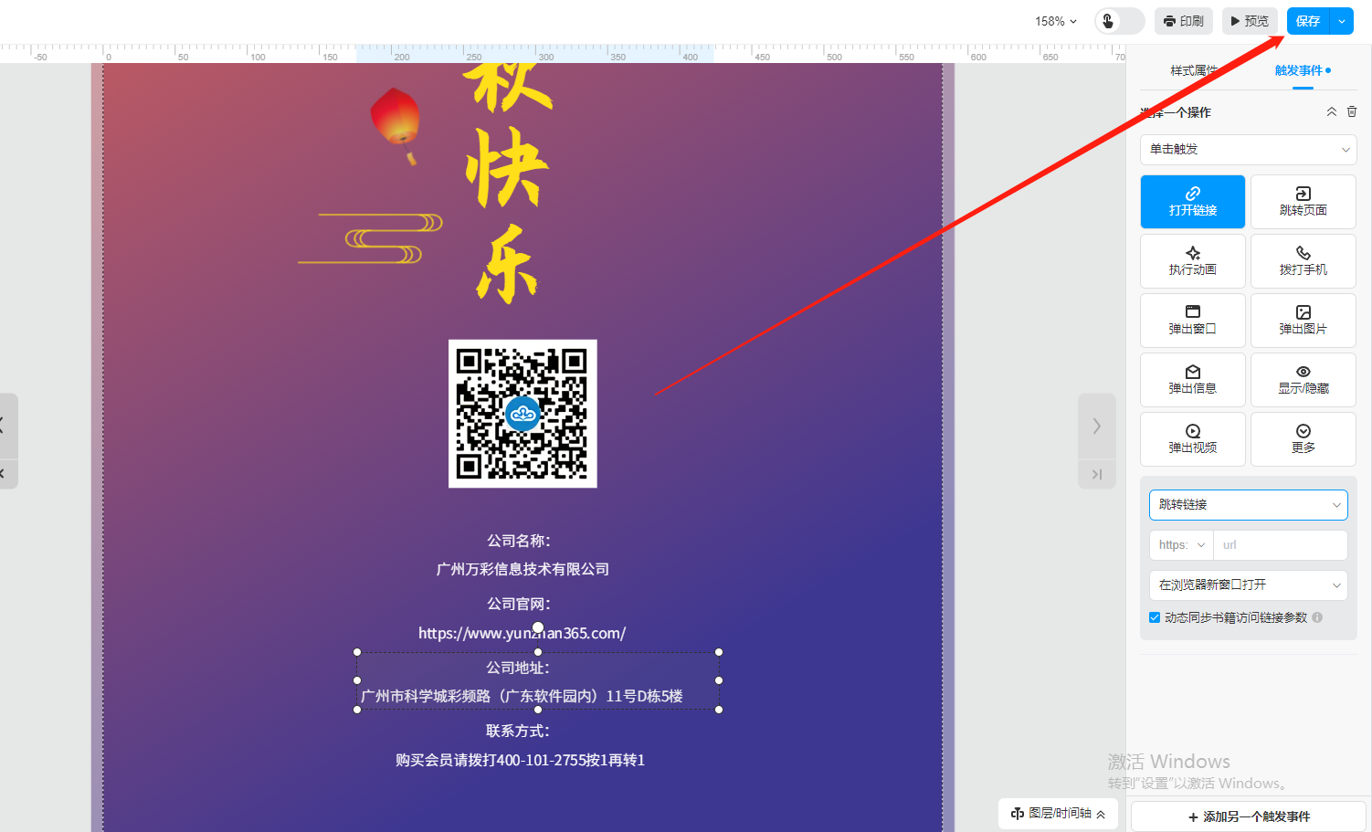 選中鏈接框,點擊【觸發事件】,然后選擇【打開鏈接】,下方輸入地圖目的地鏈接。