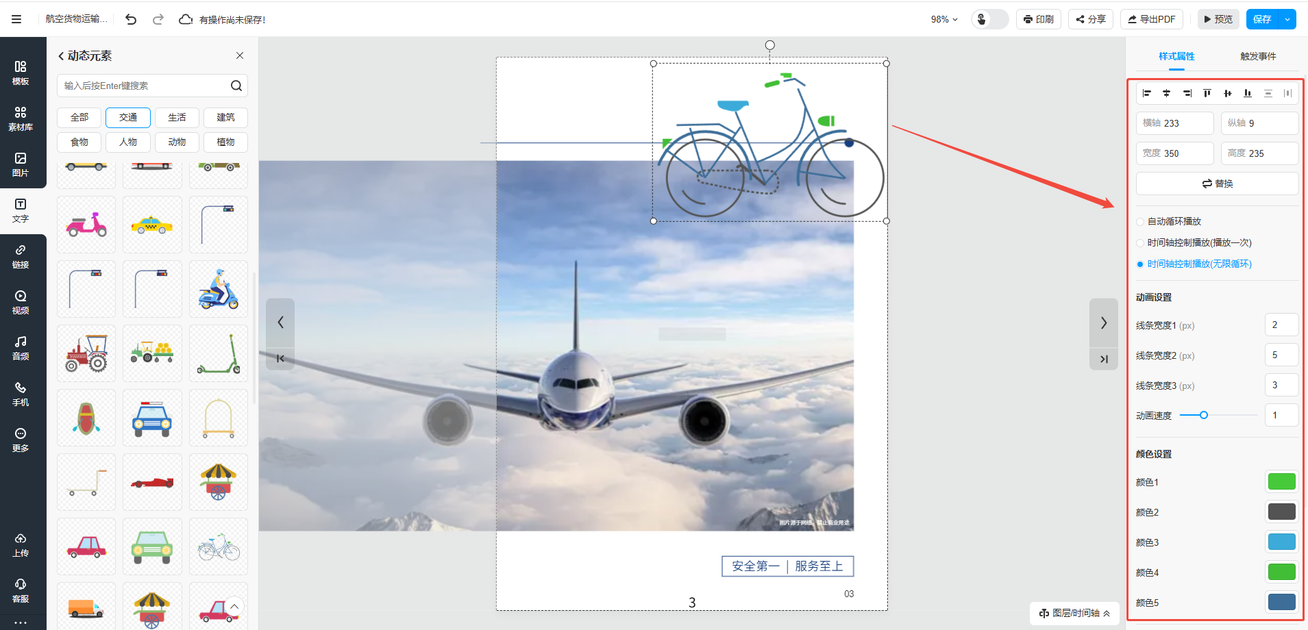 在添加動態元素/特效后,你可對其進行動畫設置,調整動畫的速度和播放設置。