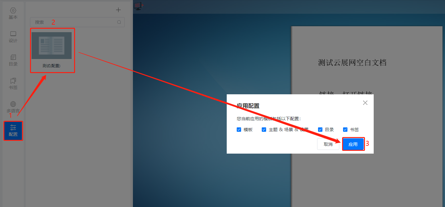 (2)點擊【配置】,單擊保存的配置,點擊【應用】,書本便會應用保存的配置。