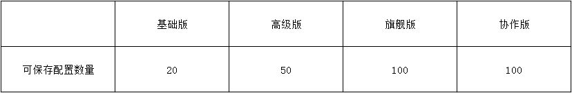 各會員版本可保存配置數量:
