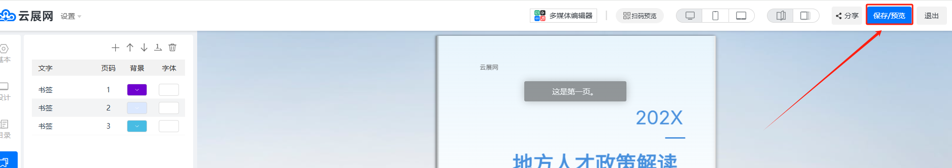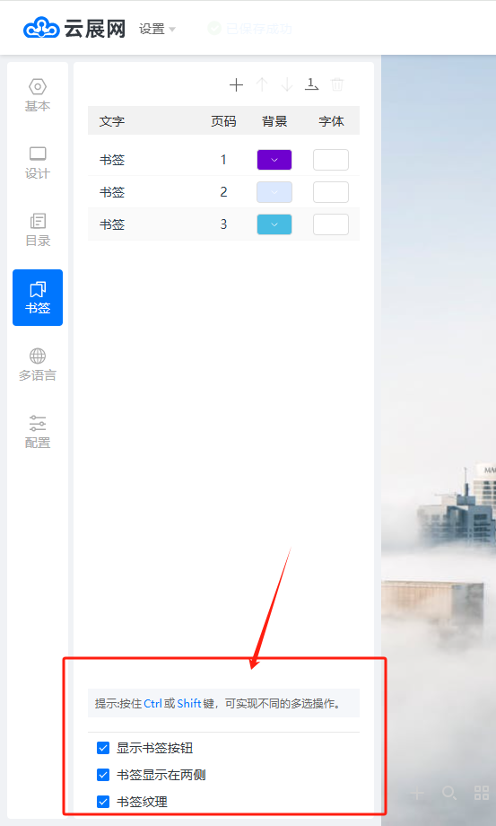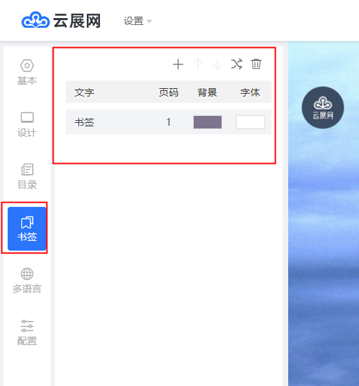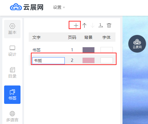 點擊【+】號添加書簽,并設(shè)置書簽的名稱、跳轉(zhuǎn)的頁面、背景顏色和字體
