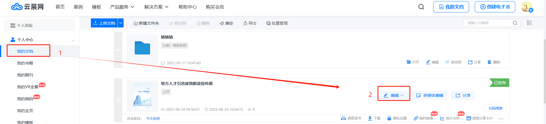在【我的文檔】頁面,點擊【編輯】進(jìn)入