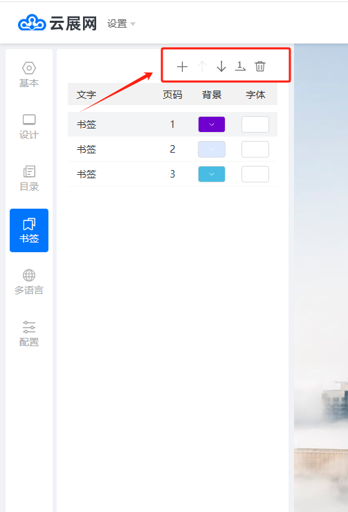 進(jìn)入編輯頁面后,點擊【書簽】打開設(shè)置面板