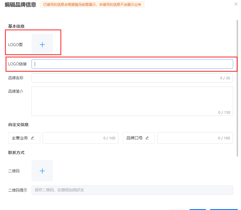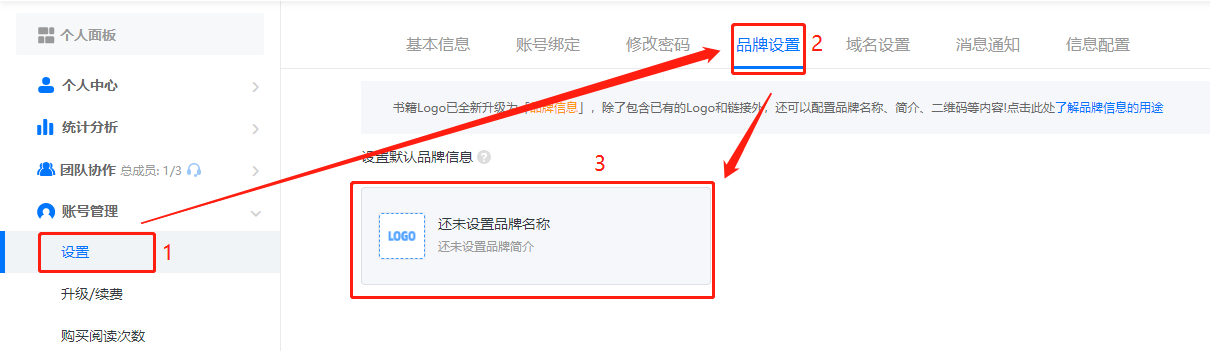 點擊【設置】,然后點擊【品牌設置】,創建品牌信息,并且只設置Logo圖和Logo鏈接,鏈接可以為空