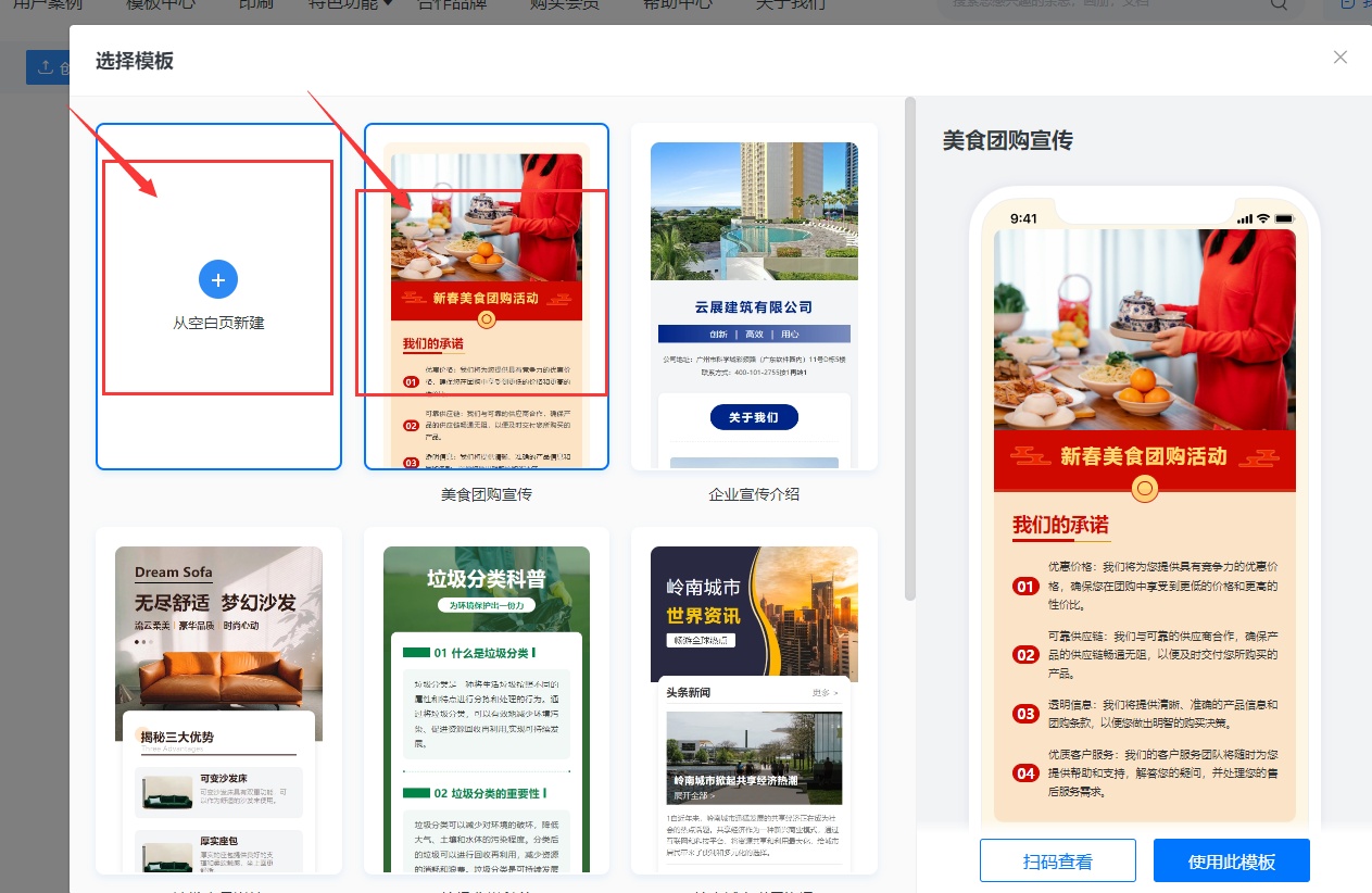 3、選擇【從空白頁創建】或者選擇【模板套用編輯】