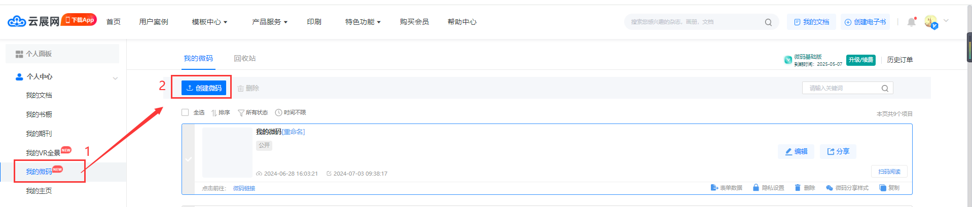 2、在【我的微碼】頁面,點擊【創建微碼】