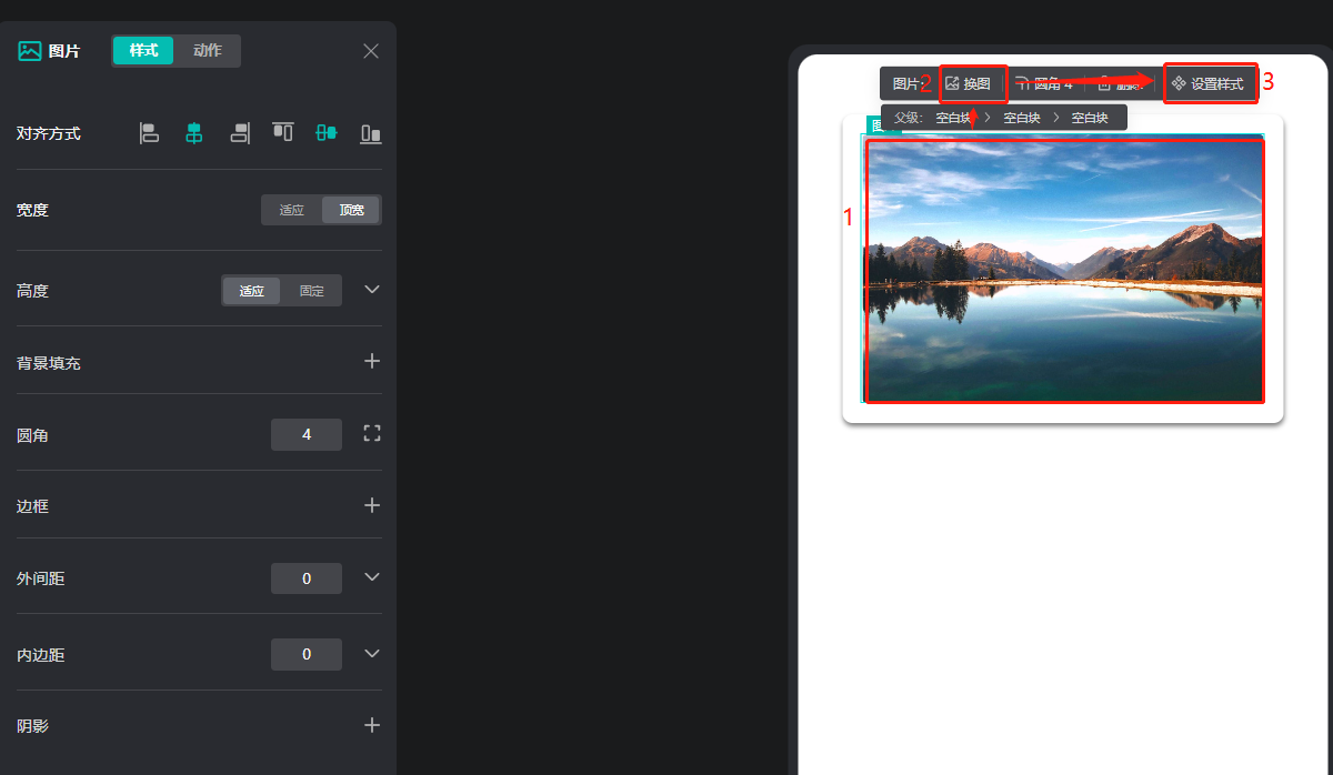 如果需要更換圖片,可以點(diǎn)擊微碼中的圖片,然后點(diǎn)擊【換圖】,然后點(diǎn)擊【設(shè)置樣式】,便可以在左邊設(shè)置圖片樣式。