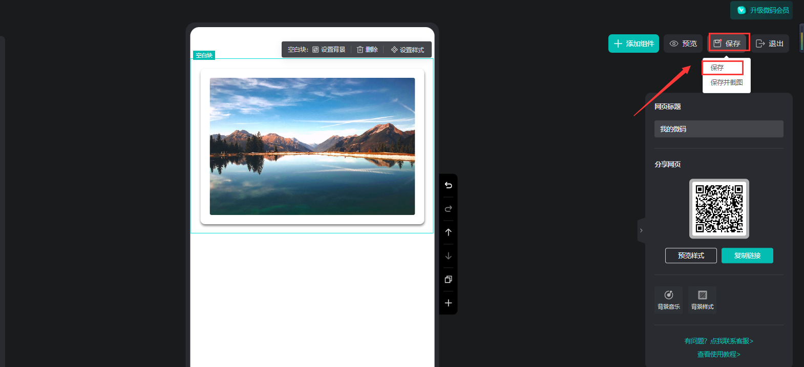 點(diǎn)擊【樣式庫】的【圖片】,選擇一個(gè)樣式,便會(huì)出現(xiàn)在微碼上。