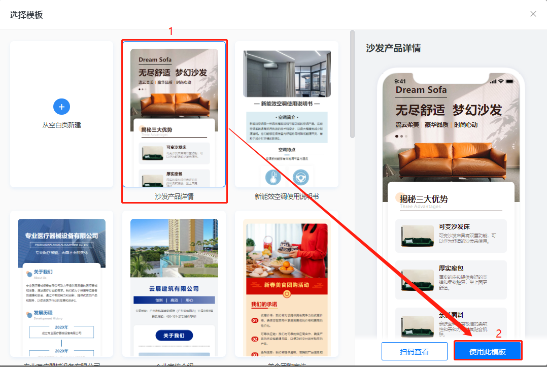 點(diǎn)擊選擇一個(gè)模板,點(diǎn)擊右下角【使用此模板】。