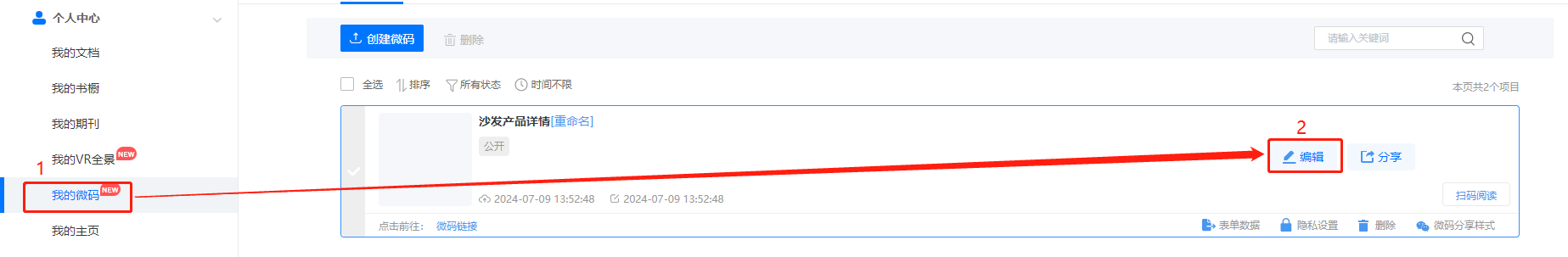 點擊【我的微碼】,點擊需要操作的微碼的【編輯】。