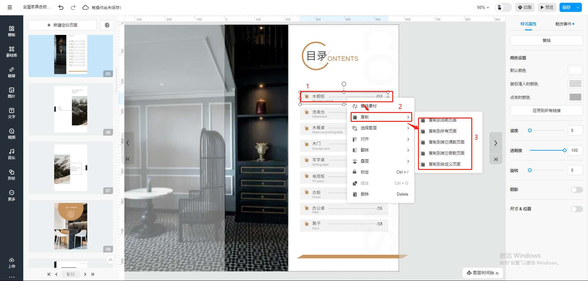選中書中需要復(fù)制的元素,右鍵點擊【復(fù)制】,選擇需要復(fù)制到的頁面。