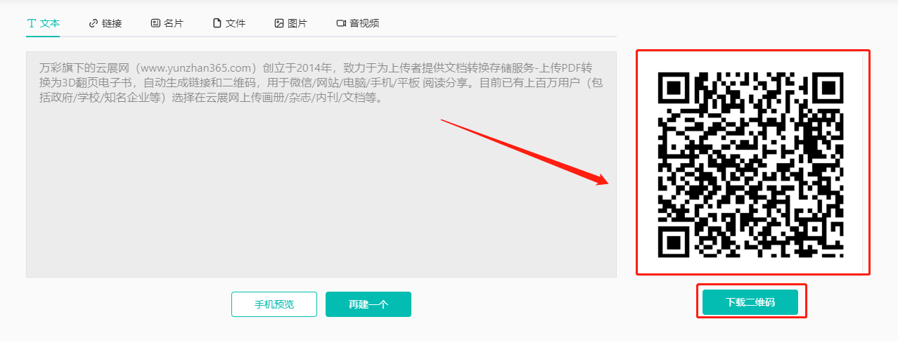 (1)點擊【文本】,下方輸入文案,點擊【生成二維碼】。